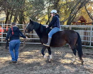 It was love at first sight. When her new mom saw her photo, she fell in love. When she met her, she loved her, but they were all a little concerned with how Gypsy would adapt. However, Gypsy blossomed under new mom's care. Gypsy’s new mom is a lifelong horsewoman with two other horses, one retired, and one getting closer to retirement. Her current riding horse is also a mustang. She is from Nevada, too, where Gypsy came from. Her new mom is calm, quiet, and confident and ever so patient, exactly what Gypsy needed to continue her growth. She also took Gypsy to a clinic with her favorite clinician, and Gypsy did so well, which reinforced her decision to adopt. Gypsy is her new mom's last horse, and she will be developed into a pleasure riding horse and primary riding horse when her current riding horse retires.